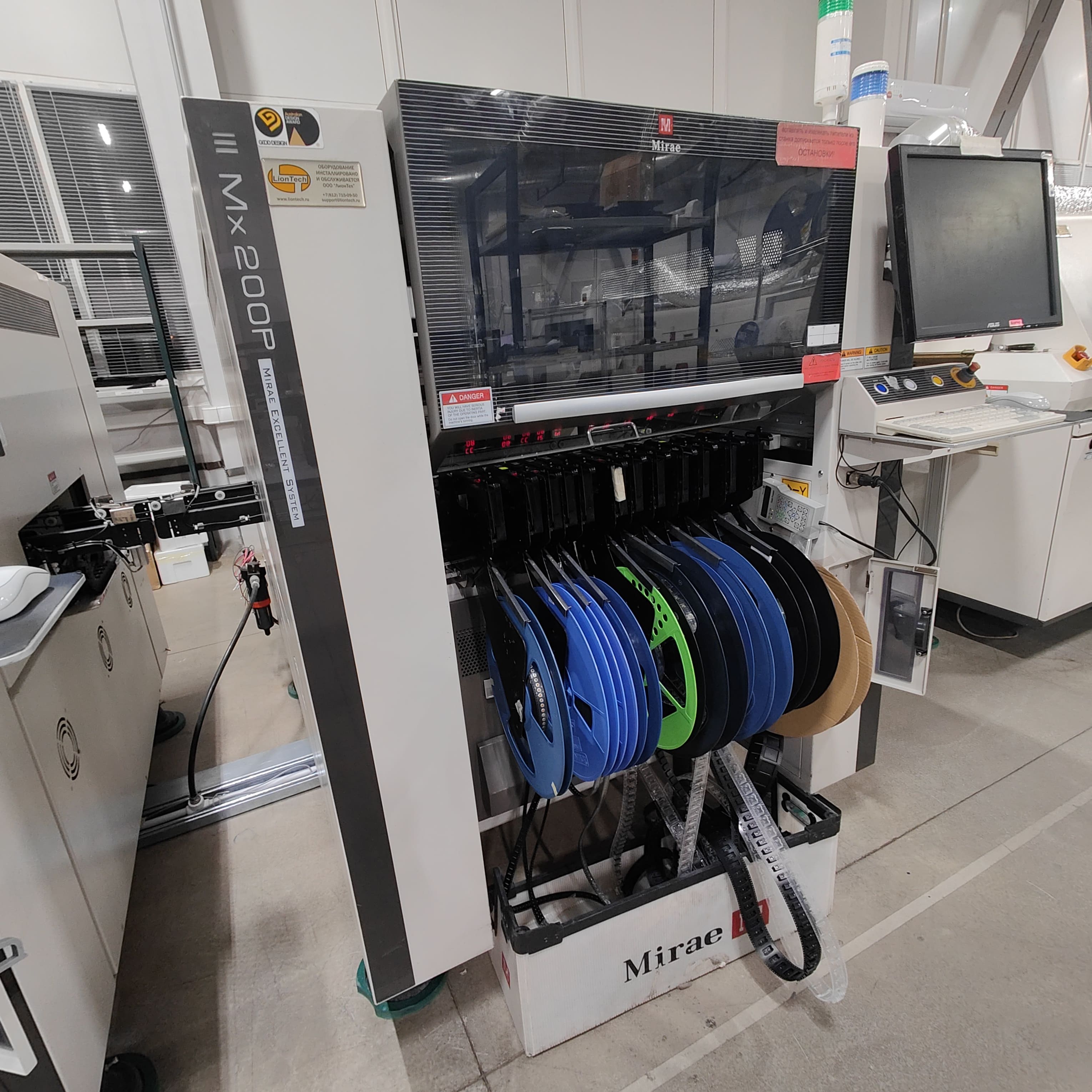 Автоматическая линия оборудования для участка поверхностного монтажа SMD компонентов на базе автоматов-установщиков производства компании MIRAE, в составе: